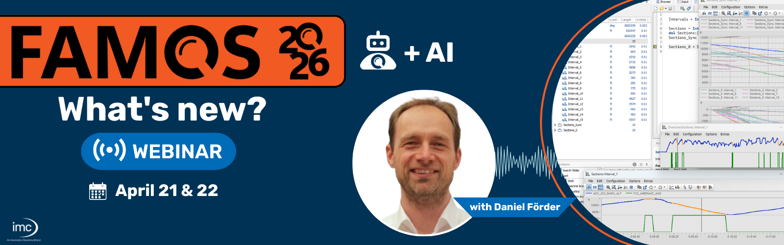 Peu importe d'ou viennent les mesures - banc d'essais, paramètres de test ou mesures sur site - imc FAMOS combine tous les outils dont vous avez besoin pour une analyse et une visualisation professionnelle de vos données et ce de l'importation des données jusqu'aux rapports prêts à imprimer.