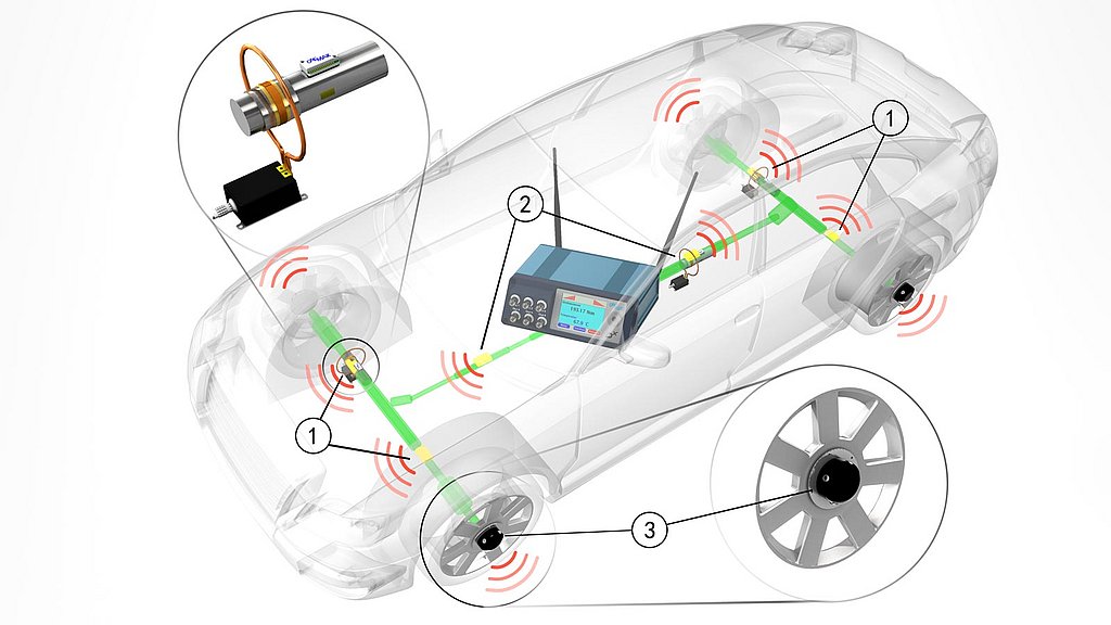 Les tâches de mesure dans les tests actuels des véhicules se concentrent de plus en plus sur des assemblages qui comprennent plusieurs composants en rotation. La tendance à une approche holistique du test des composants des véhicules entraîne de nouveaux défis, notamment pour la transmission des signaux de télémétrie.Ce n’était pas plus simple avant, c’était moins complexe : les expériences de résistance à la fatigue déterminaient les sollicitations subies par un composant unique. S’il s’agissait d’un composant rotatif comme un arbre, un axe ou une roue, la ligne de mesure était remplacée par un système de télémétrie. On utilisait un système de télémétrie analogique à 1 canal avec unité émettrice qui gérait la mesure directement sur le composant et l’envoyait à l’unité réceptrice. Ces instruments de mesure s’avèrent de plus en plus souvent insuffisants pour le développement actuel des véhicules : s’il faut par exemple faire une mesure dynamique de l’efficacité d’une chaîne cinématique complexe avec plusieurs axes d’entraînement, les données doivent être collectées simultanément sur plusieurs composants.