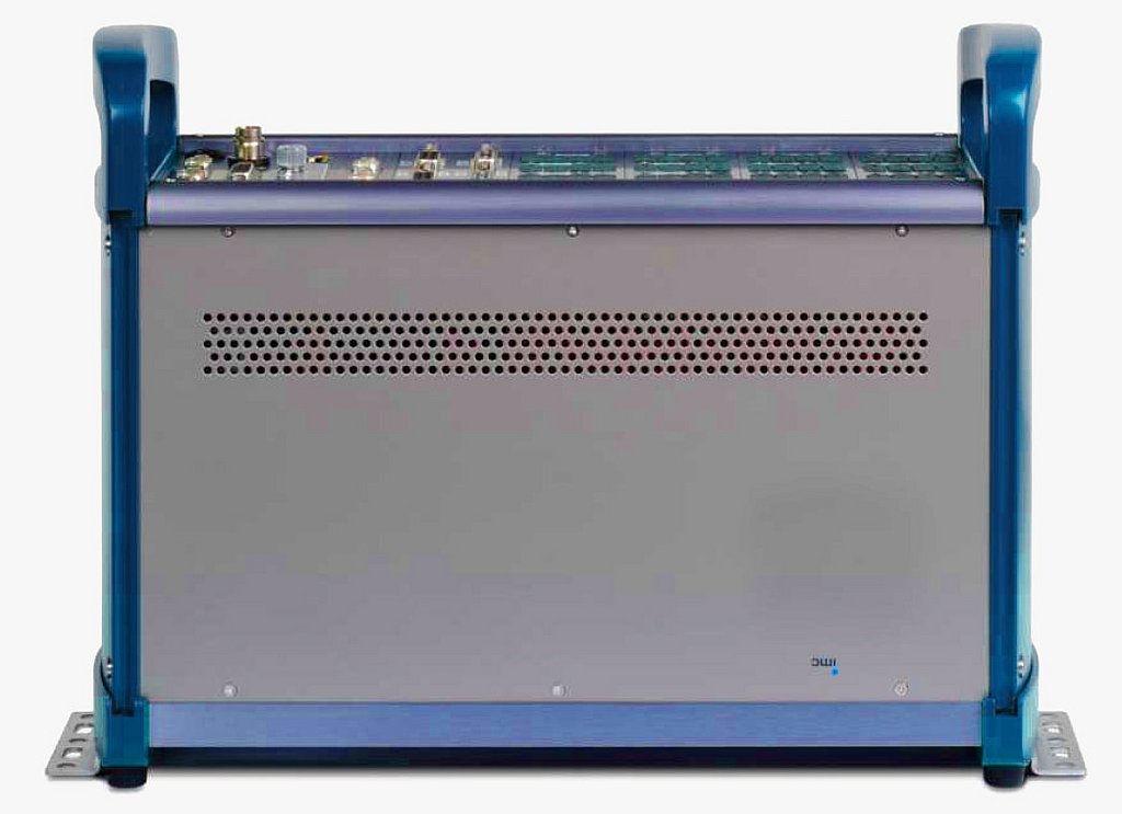 Propriétés: Pour les systèmes livrés avant 2012, le système doit être équipé de deux nouveaux butoirs de panneau arrière (auxquels sont fixés les pieds en caoutchouc), afin d'admettre les vis du support. Ce support de fixation du panneau arrière peut être utilisé à la fois pour imc SPARTAN and for imc CRONOScompact.