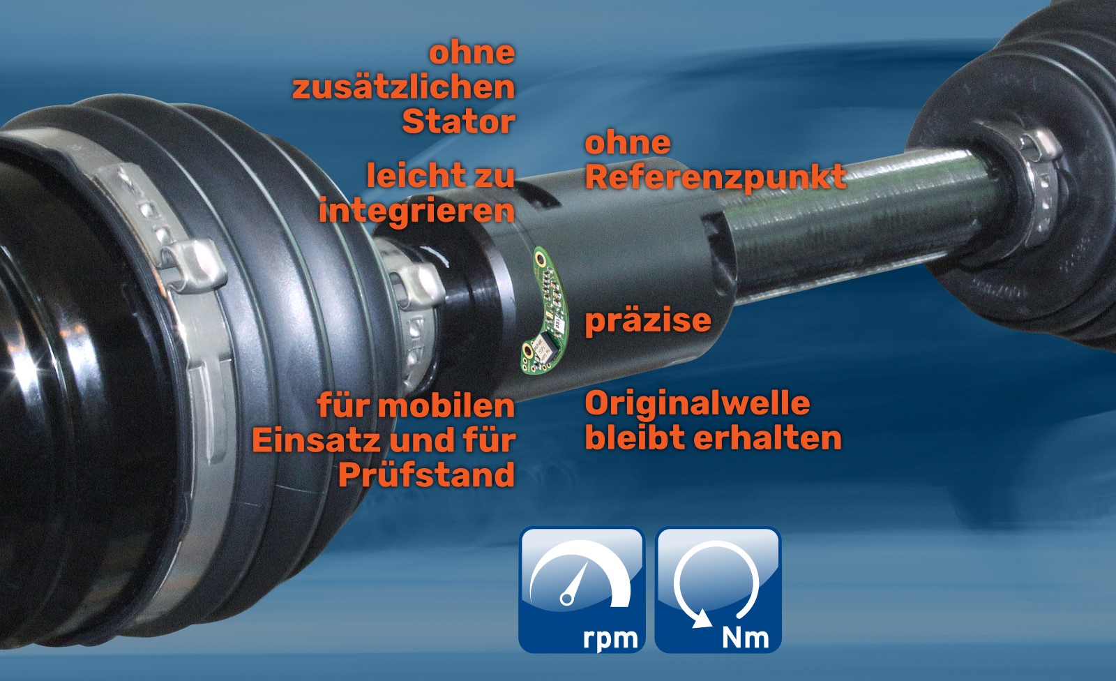 Le système de télémétrie Dx peut fonctionner jusqu'à quatre capteurs Dx-Power et mesure de manière synchrone les valeurs des quatre roues motrices ou des arbres de cardan. Les données apparaissent en temps réel et peuvent être captées et traitées via CAN, Ethernet ou analogique.