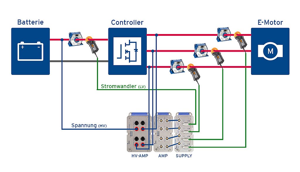 L'interface imc STUDIO 3PDI pour l'intégration logicielle de périphériques tiers (Third Party Device Integration) permet d'intégrer des wattmètres à large bande passante dans un réseau de mesure imc. Ceci peut être appliqué, par exemple, pour analyser les tensions modulées en largeur d'impulsion et les courants résultants sur le moteur électrique.